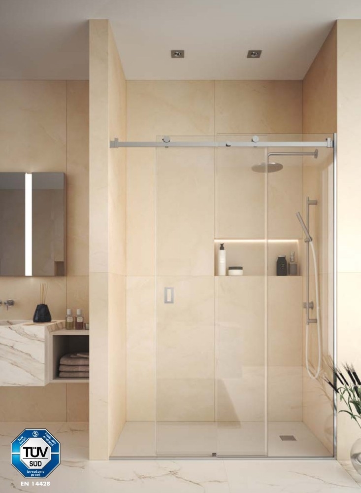 Doccia con 1 lato fisso e 1 porta scorrevole in vetro temperato 8mm trasparente Art. DCCFLAT003